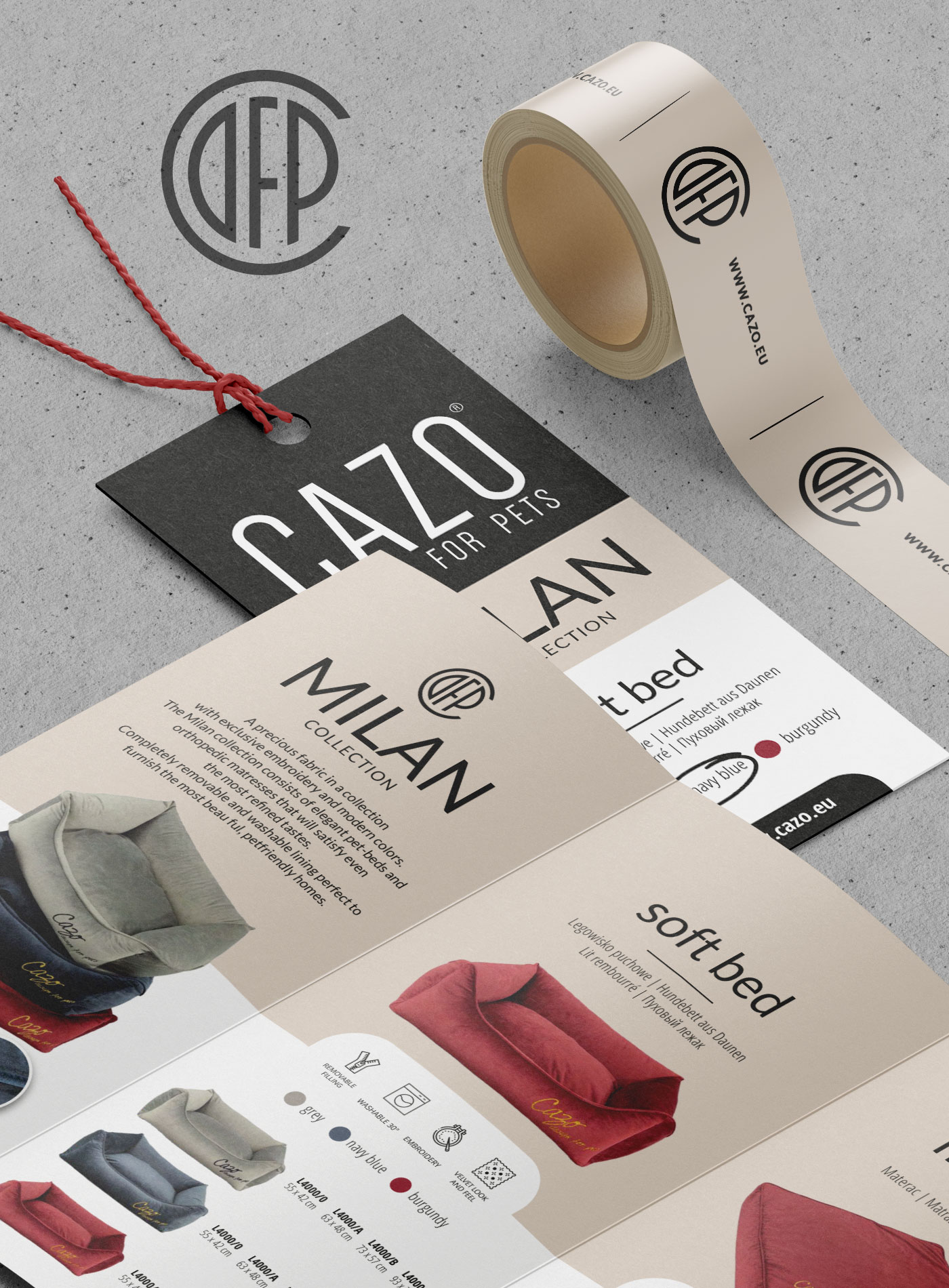 Projekt monogramu i identyfikacji wizualnej dla marki CAZO Design for Pets, oferującej posłania i zabawki dla zwierząt domowych. Projekt wygrał konkurs na portalu Designer.pl w 2022 roku.