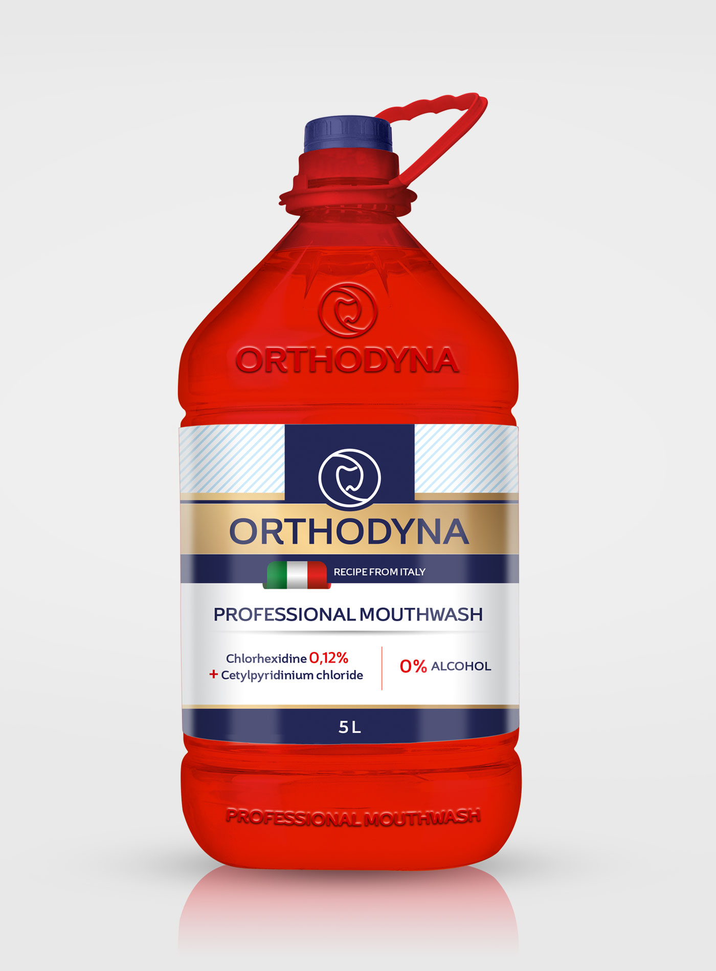 Logotyp i etykieta płynu dentystycznego Orthodyna. Projekt wygrał konkurs na portalu Designer.pl w 2021 roku.