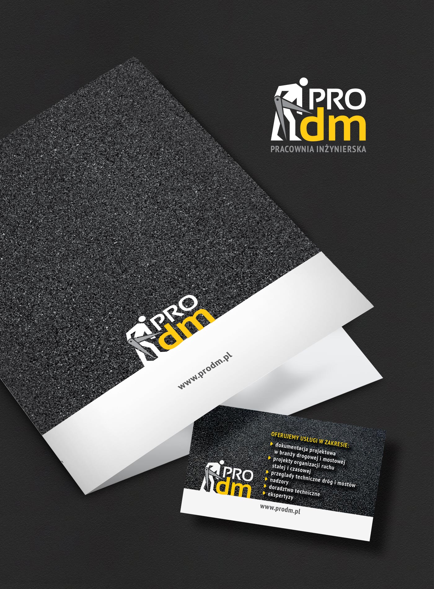Logotyp i materiały firmowe dla pracowni inżynierskiej PRO DM.