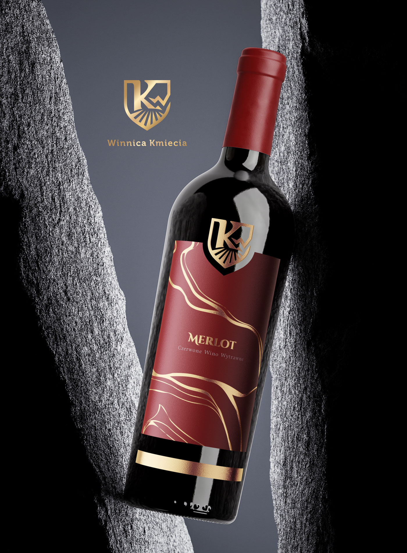 Logotyp i etykiety dla marki winiarskiej Winnica Kmiecia.