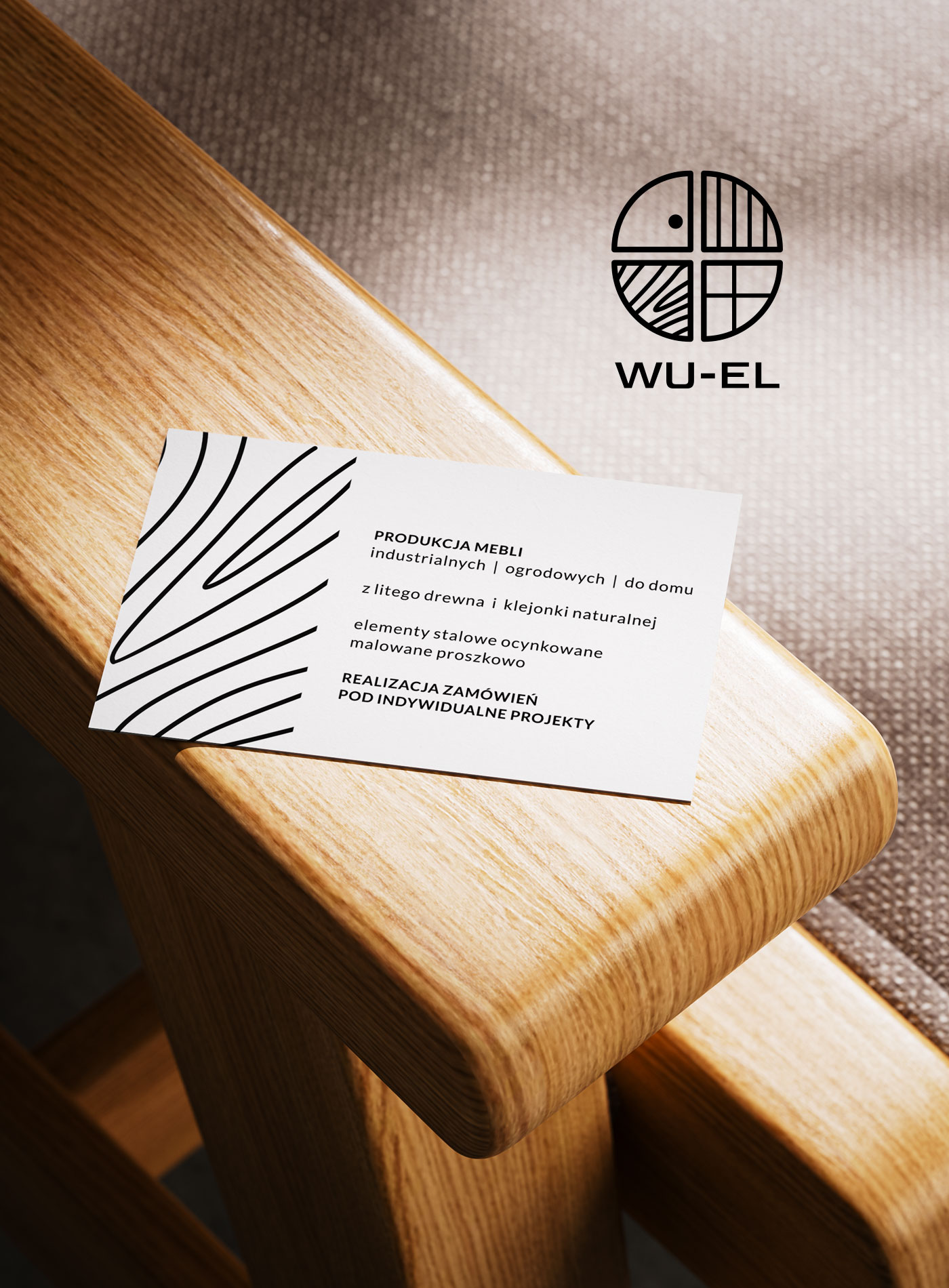 Projekt logotypu i wizytówek dla marki Wu-El oferującej meble drewniane, bramy i ogrodzenia metalowe, wdrożenie – 2020 rok.