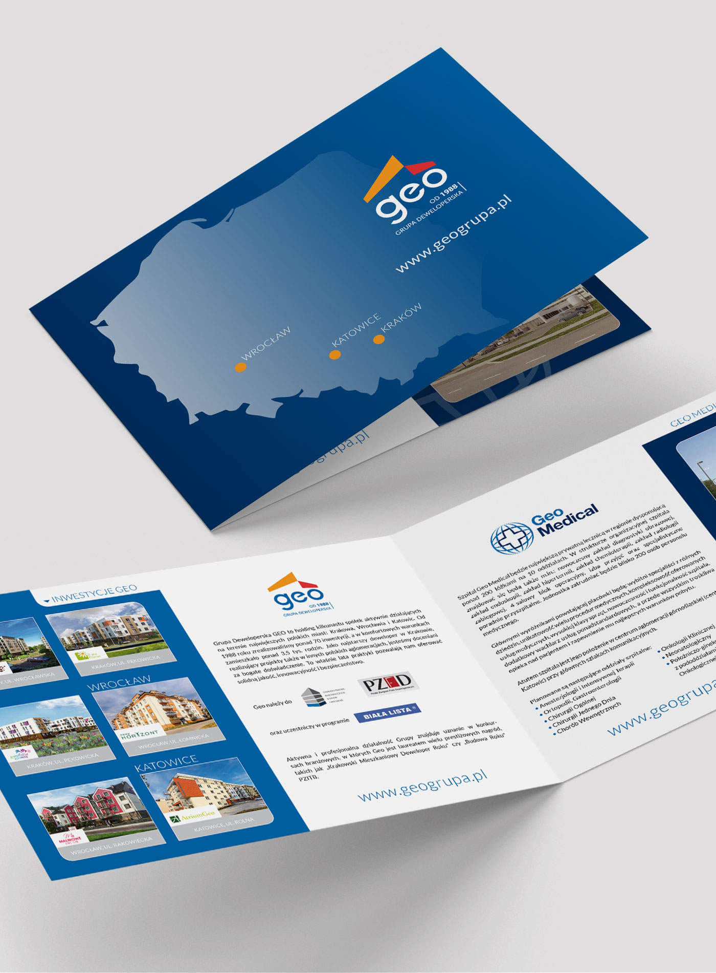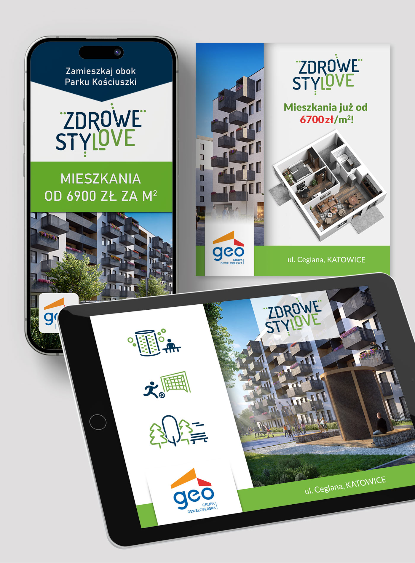 Zaproszenie dla GEO Grupy Deweloperskiej. Wśród materiałów jakie projektowałam dla GEO były reklamy wielkoformatowe i prasowe, billboardy, bannery, oklejenia biur sprzedaży, internetowe kreacje reklamowe dla różnych wydawców, liczne materiały firmowe i targowe, prezentacje… Kreacje internetowe dla GEO Grupy Deweloperskiej promujące jedną z inwestycji.