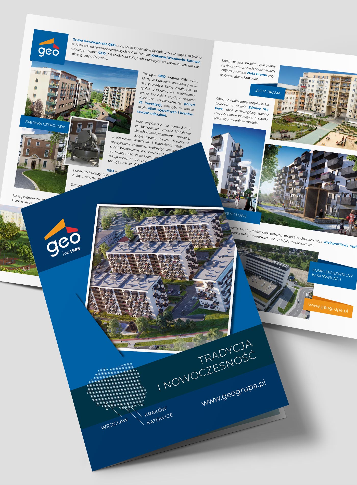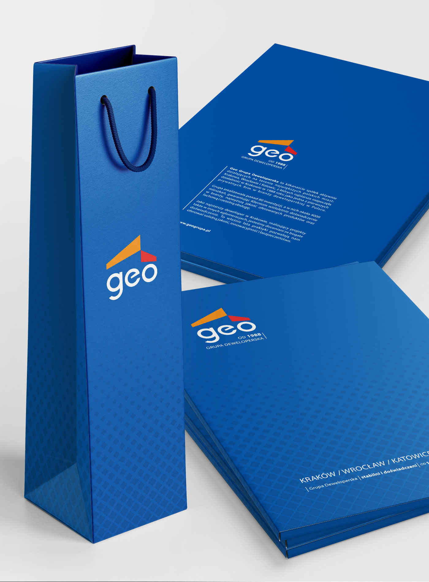 Folder dla GEO Grupy Deweloperskiej dla której pracowałam przez wiele lat projektując materiały promocyjne dla wielu inwestycji grupy jak Fabryka Czekolady w Krakowie, Malinowe Zacisze we Wrocławiu, Geo Medical w Katowicach… Torebka na wino i teczka firmowa dla GEO Grupy Deweloperskiej we wspólnym, spójnym layoucie.
