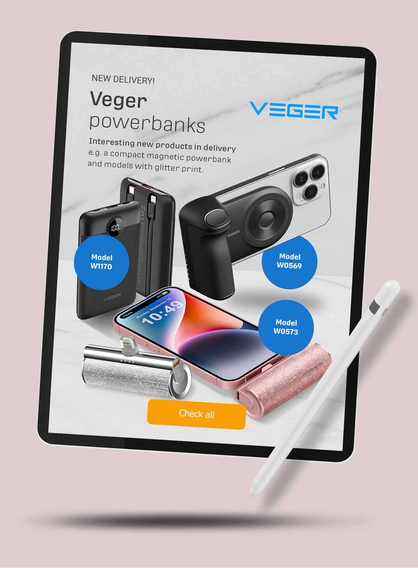 Newsletter z promocją marki Veger dla klienta z branży akcesoriów GSM.Ulotka składana dla marki Earthnicity Minerals London.