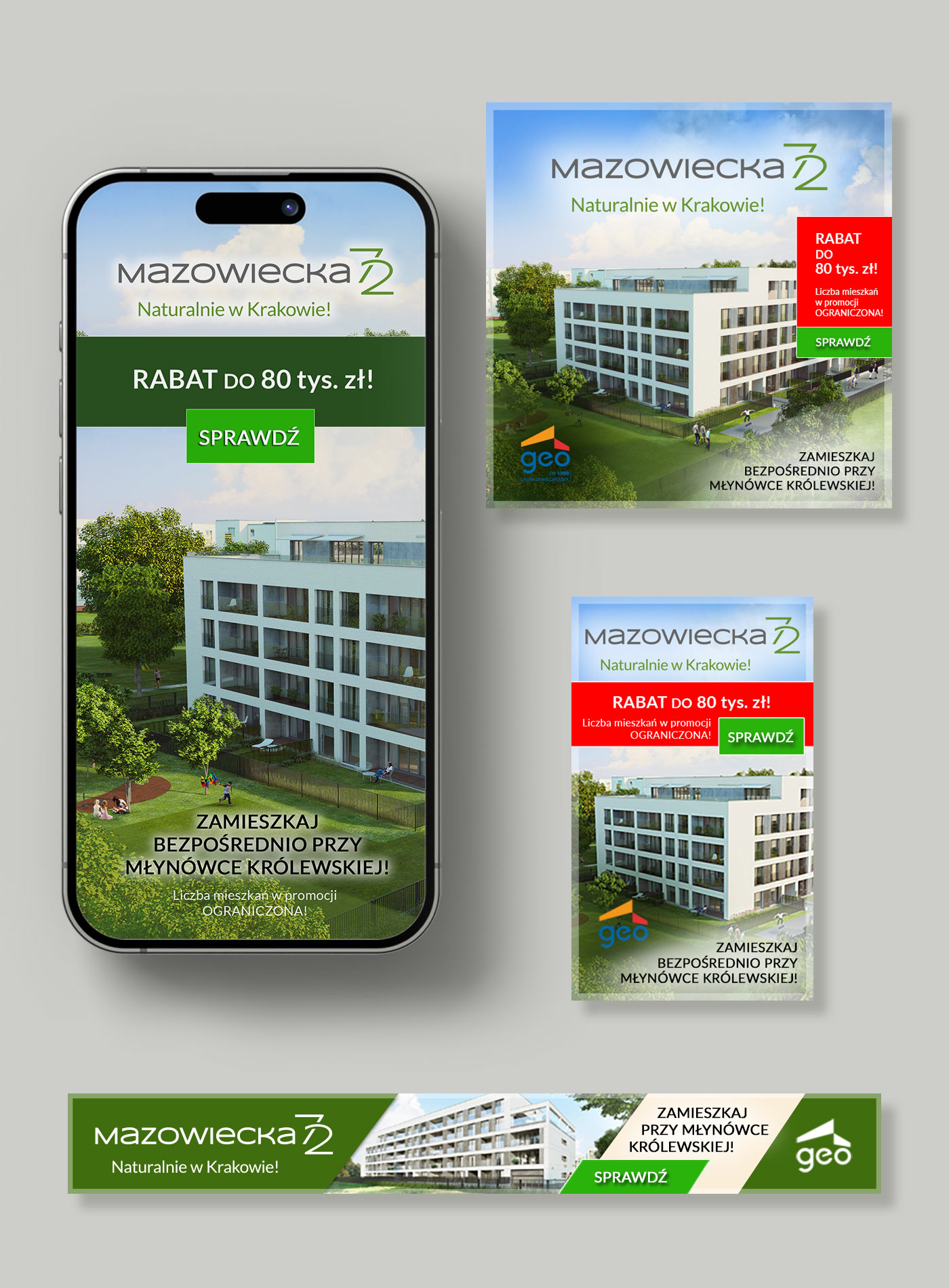Stworzyłam logotyp i claim a także wszystkie materiały promocyjne dla tej prestiżowej inwestycji, w tym księgę znaku obejmującą podstawowe wytyczne dotyczące stosowania znaku i reprodukcji poligraficznej. Inwestycję obsługiwałam w całości do momentu sprzedaży wszystkich mieszkań.Zaprojektowałam kilka kampanii remarketingowych promujących inwestycję…