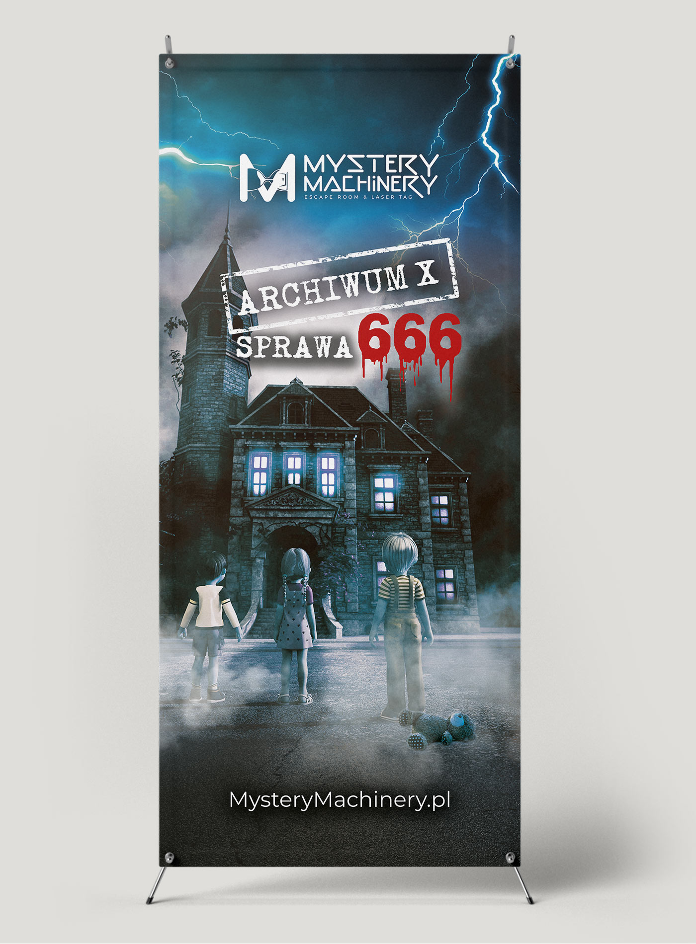 Dla marki Mystery Machinery, która buduje escape roomy stworzyłam serię banerów przedstawiających zarys scenariusza gry. Pomysł, projekt, fotomontaż, DTP.